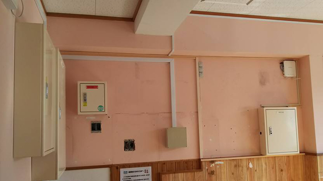 腰下はクロス張替、腰上はクロスメイクで鮮やかなピンク色での施工ですよ~